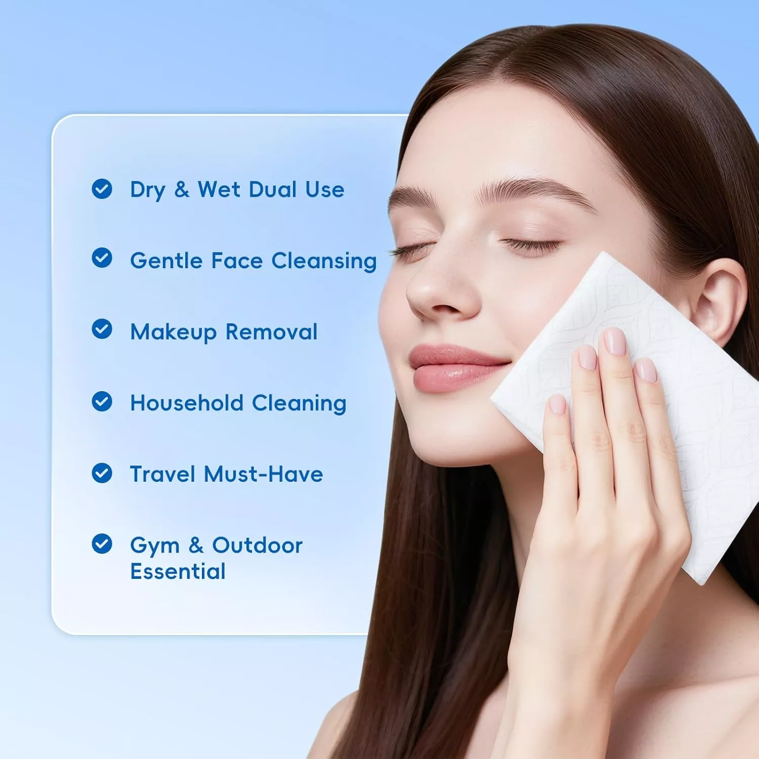 De vezels absorberen snel water, lotion of reinigingsvloeistoffen, waardoor ze geschikt zijn voor gezichtsreiniging, make -upverwijdering en dagelijkse huidverzorgingsroutines.